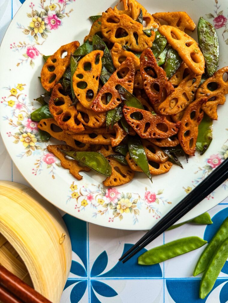The lotus root provides a crunchy texture and is packed with nutrients, while the snow peas add a refreshing crispness, making this stir fry a vibrant and tasty treat that’s easy to make and perfect for any meal.