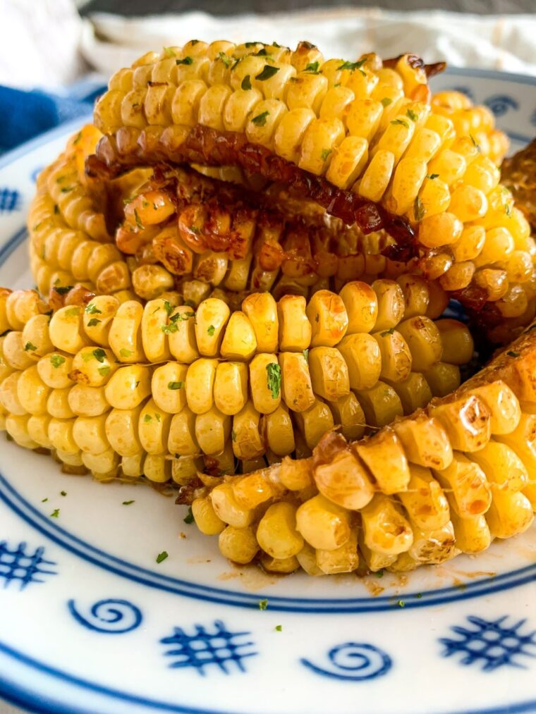 The cooking time may depend on your air fryer brand or the size of the corn, but I generally find that 15 minutes at 350F is the perfect amount of time for juicy, tender corn that is slightly crispy on the outside. I love that signature snap that you get when you bite into cooked corn, so having a crispy outside and juicy inside is everything!