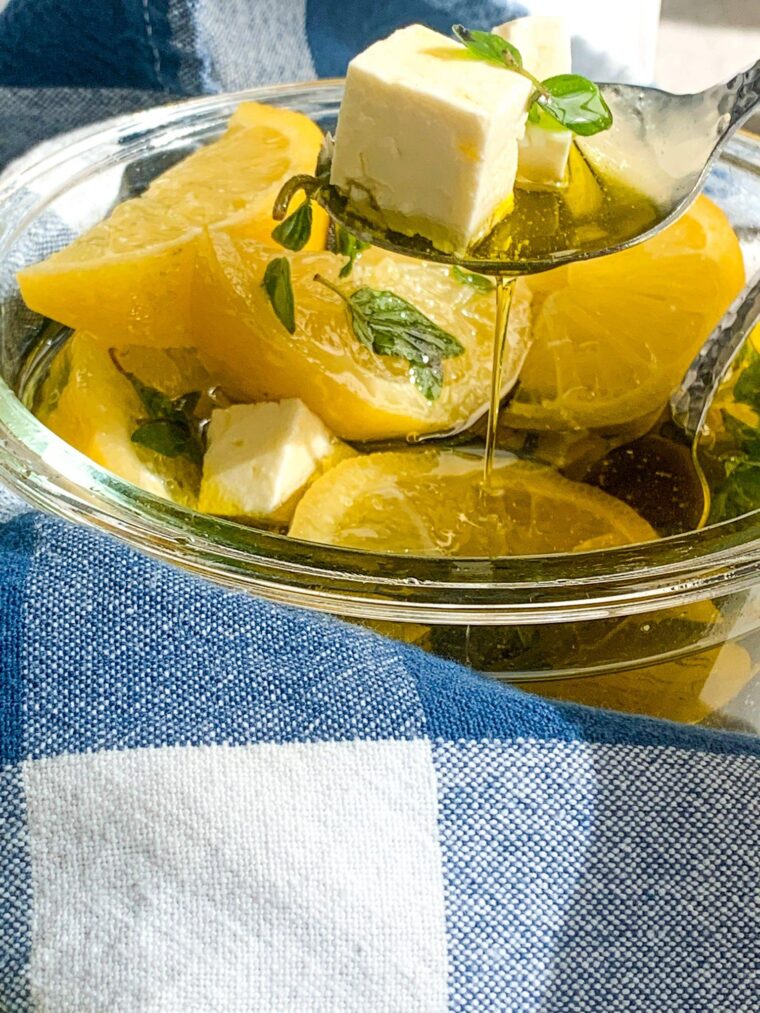 Serving Marinated Feta With Lemon and Oregano