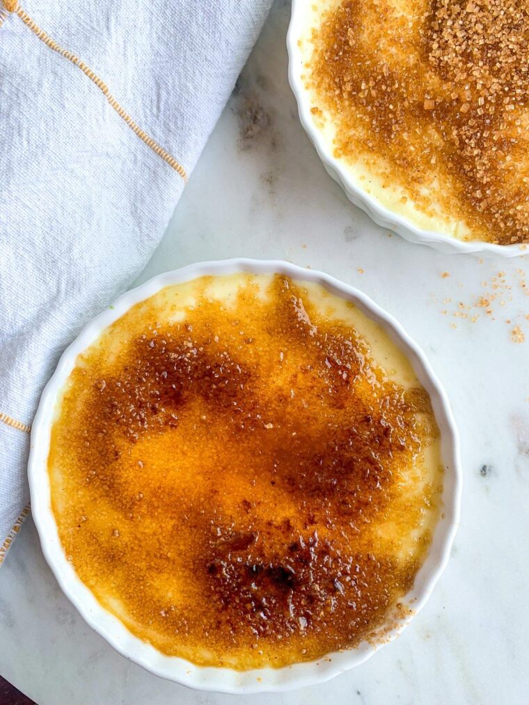 There’s no baking or water baths involved in this method, and the texture is still dense and rich like the labor of love from a traditional crème brûlée custard!