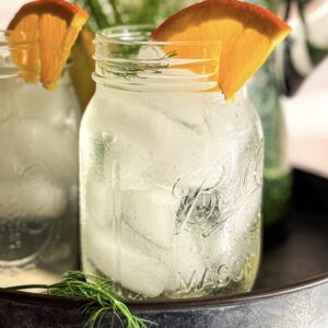 Place the fennel fronds, fennel slices, and fennel seeds into a large pitcher.