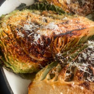 Bake the cabbage uncovered for 45-60 minutes at 325F (160C) or until the cabbage is soft and caramelized.
